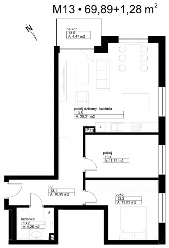 | Pokój dzienny i kuchnia: | 30.31 m² |