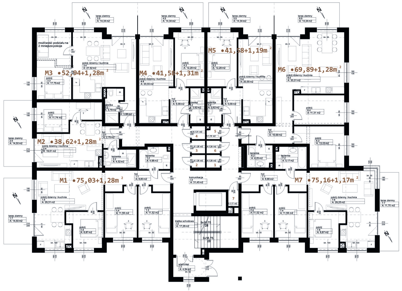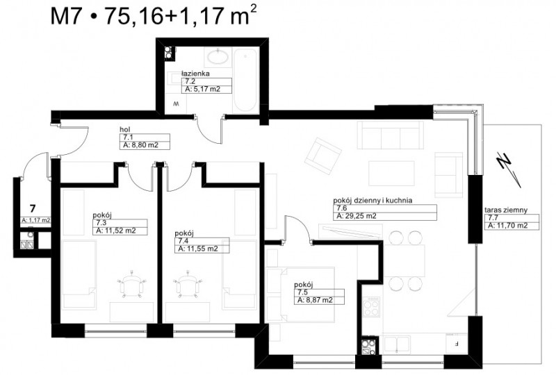 Powierzchnia mieszkania: 75.16 + 1.17 m²
