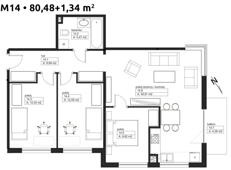 | Pokój dzienny i kuchnia: | 30.91 m² |