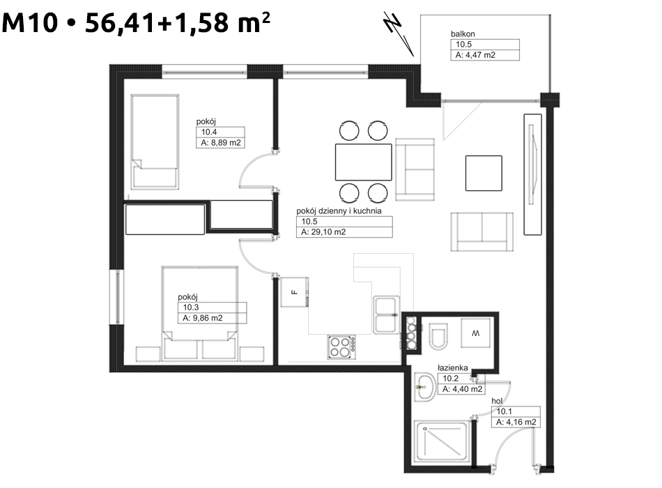 | Pokój dzienny i kuchnia: | 29.10 m² |