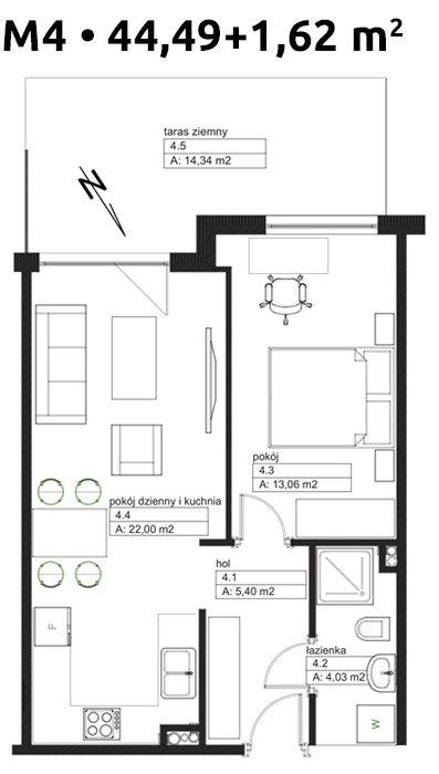 44.49 + 1.62 m²